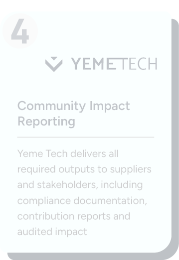 CC provides the financial custody and governance layer within the Yeme Procurement Model. It holds and administers Social Value contributions post-award, ensuring funds are ring-fenced, traceable and deployed strictly in line with agreed purposes.